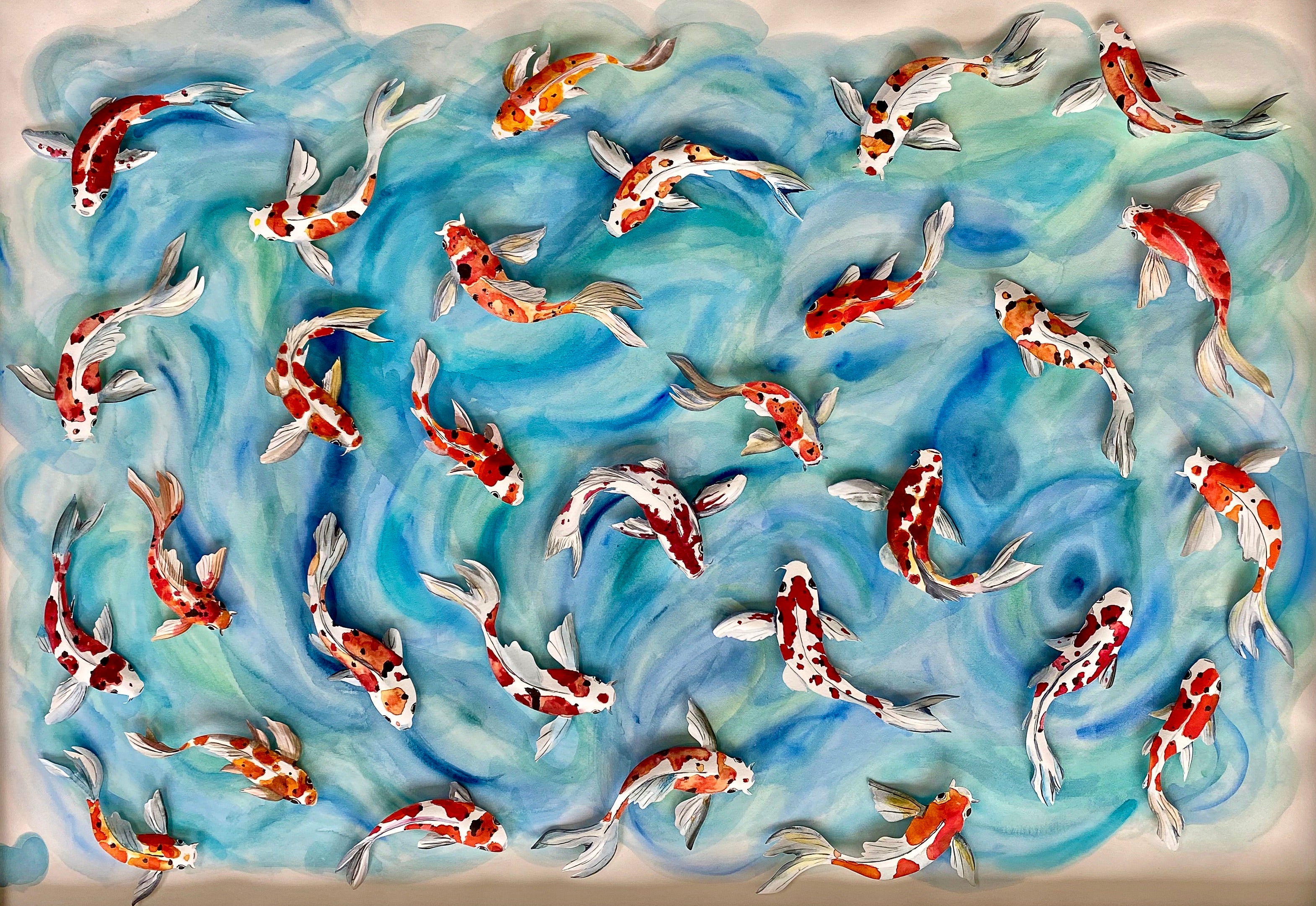 My Koi collection celebrates the beautiful movement and silhouette of swimming Koi...